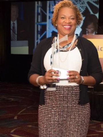 Monica Alexander, Director, Customer Tools, Charter Communications and NAMIC-Carolinas President accepting the award for NAMIC-Carolinas: 2017 Programming Achievement.